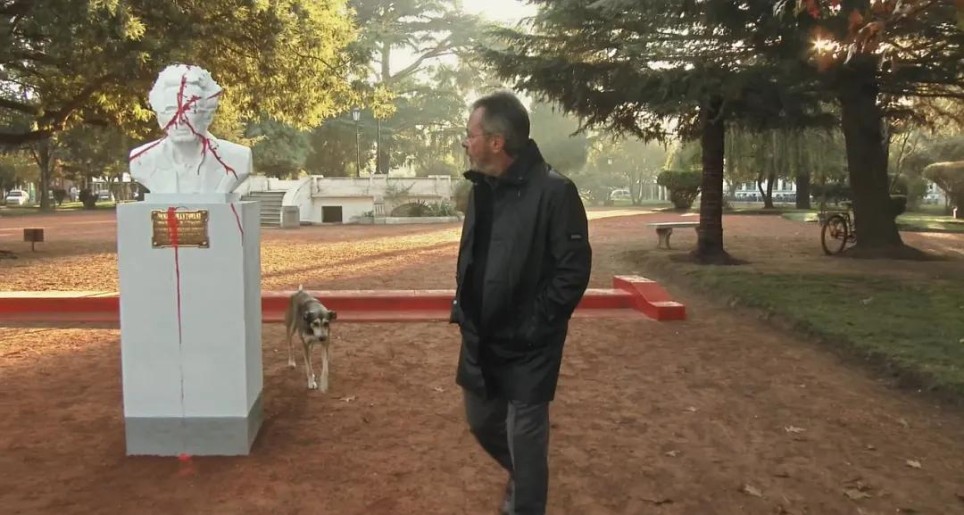 但是,当作家看到自己的雕像,竟然在三秒钟之后就被亵渎成这样,这暴脾气可也就上来了。